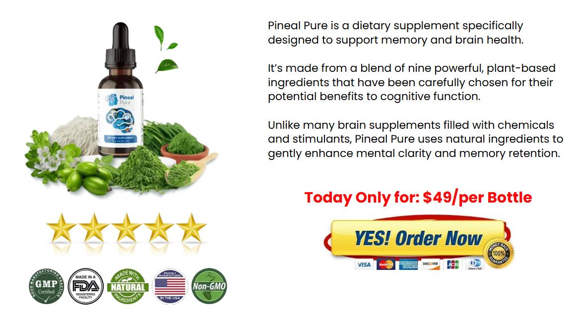 Pineal Pure is positioned as a natural supplement aimed at supporting brain health, mental clarity, and overall well-being. With its blend of plant-based ingredients, antioxidants, and essential nutrients, it appeals to individuals looking for a more holistic approach to cognitive and emotional balance.